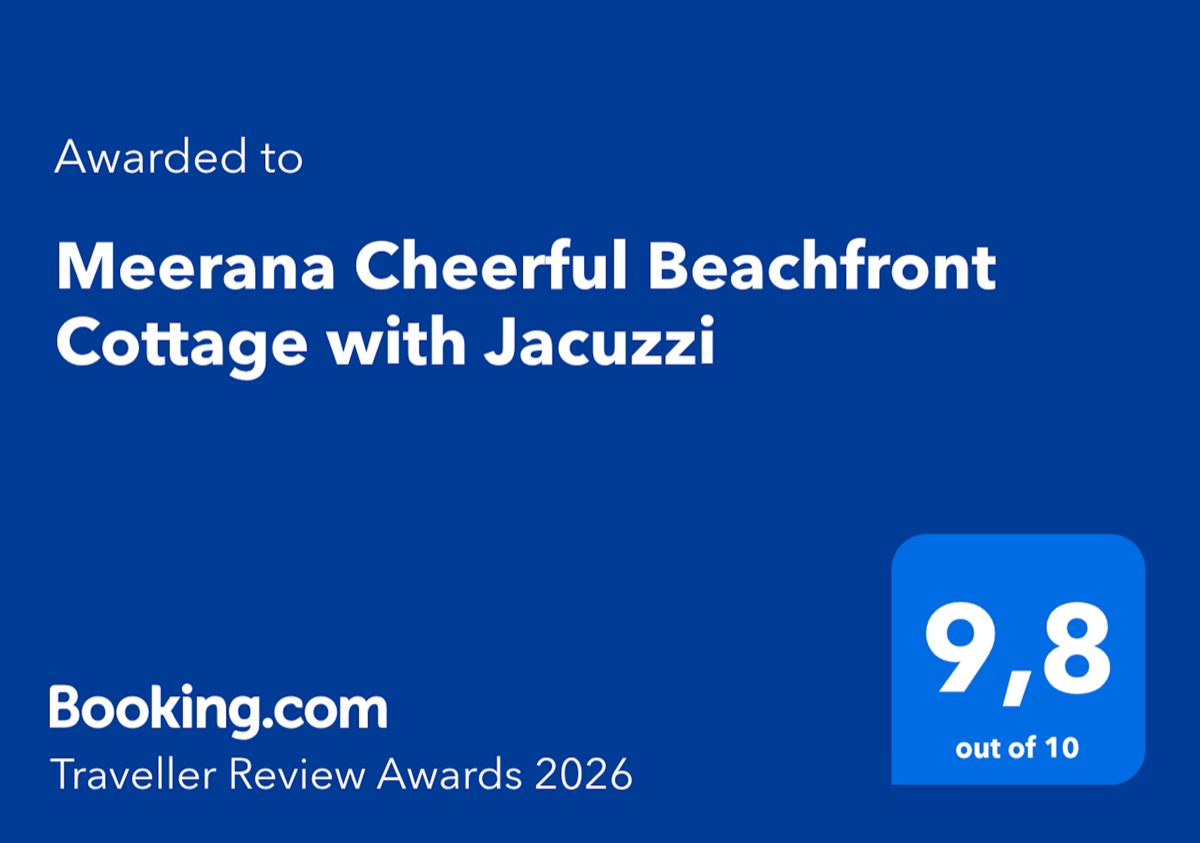 Meerena — это коттедж с 2 спальнями для 4 взрослых (и 1 ребенка, спящего в детской кроватке), на пляже плюс джакузи